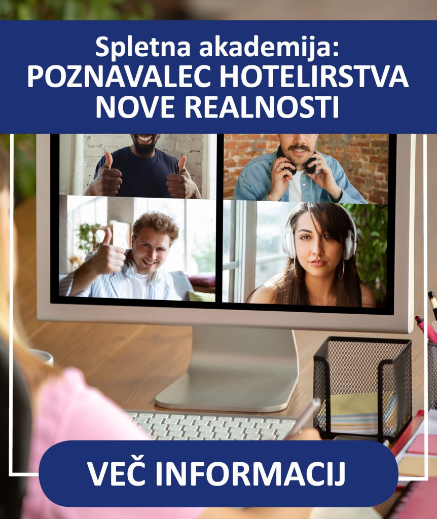 Ker smo v decembru beležili velik interes in nato prošnjo s strani delodajalcev, da terminsko mini akademijo Poznavalec hotelirstva nove realnosti izvedemo v januarju, vam sporočamo, da se zaradi nespremenjene situacije na trgu začetek akademije zamakne v čas, ko bodo razmere na trgu stabilnejše. Še vedno pa lahko izvedemo program mini akademije samo za vašo skupino zaposlenih.
