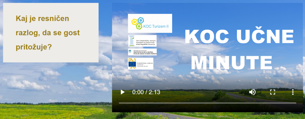 V okviru projekta KOC Turizem II smo pripravili več kratkih video vsebin za vseživljenjsko krepitev kompetenc. Vabljeni, da pogledate 40 video učnih minut na: www.kocturizem.eu