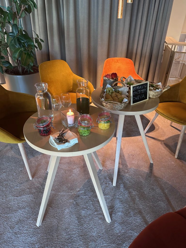 SEIC trening za osvežitev restavracijske ponudbe, ki je dosegel že več ponovitev nosi naslov Sodobni trendi postavitve bifejske mize. Na treningu trenerja kulinarične stroke skupaj s kuharsko ekipo restavracije izvedeta in poučita o novem konceptu bifejske mize za zajtrk, kosila ali večerjo. Na sliki utrinek nove postavitve bifejske mize za zajtrk v Zdravilišču Radenci, kjer se poslej predstavljajo z novo podobo v restavracijah, ki je hkrati prijetna za oči in funkcionalna za goste.
