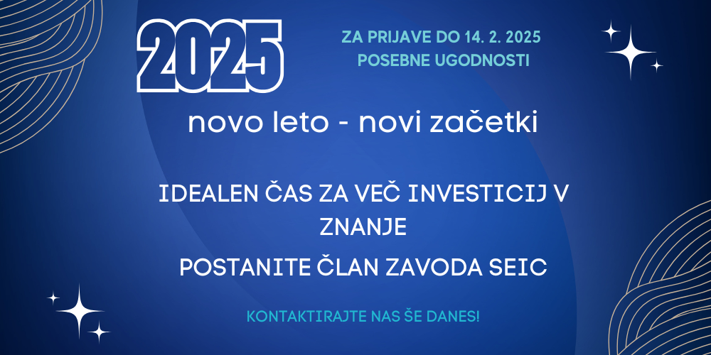 Zakorakali smo v novo leto 2025. Ob vseh dobrih željah vam sporočamo, da je v tem času izjemna priložnost, da okrepite vsa vaša izobraževalna prizadevanja z našimi strokovnimi pogledi, izkušnjami in programi ter v letu 2025 presežete cilje na področju usposabljanj vašega kadra.