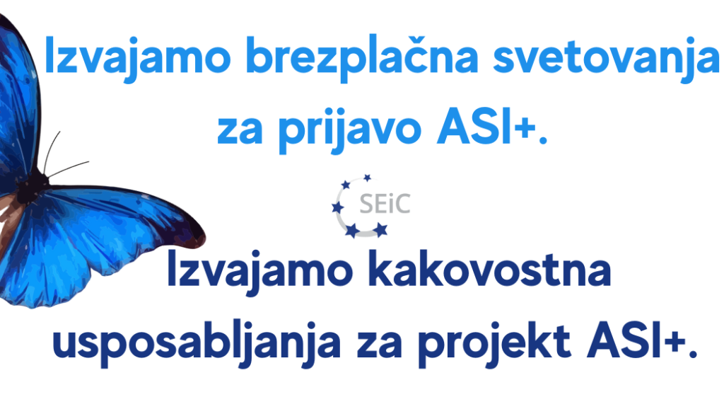 Objavljen je nov razpis ASI+ (Aktivno staranje za vključujočo družbo), ki ponuja priložnosti za sofinanciranje projektov na področju vključevanja starejših. V izobraževalnem centru vam z veseljem in brezplačno stojimo ob strani pri razumevanju razpisa in pripravi prijavne dokumentacije. Za vsa vprašanja in podporo nas lahko kadarkoli kontaktirate: info@seic.si. Rok za oddajo prijav je 23.6.2025.